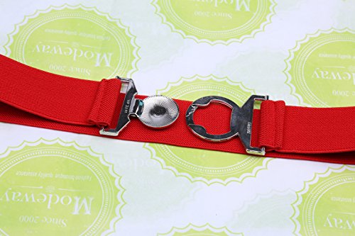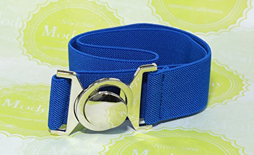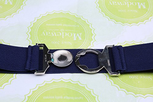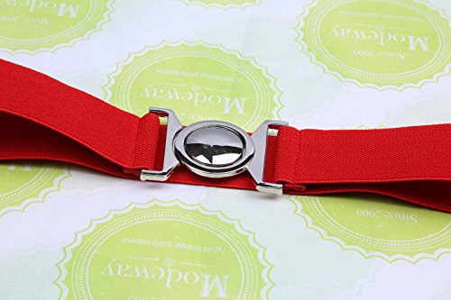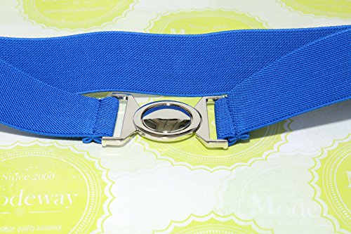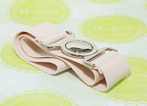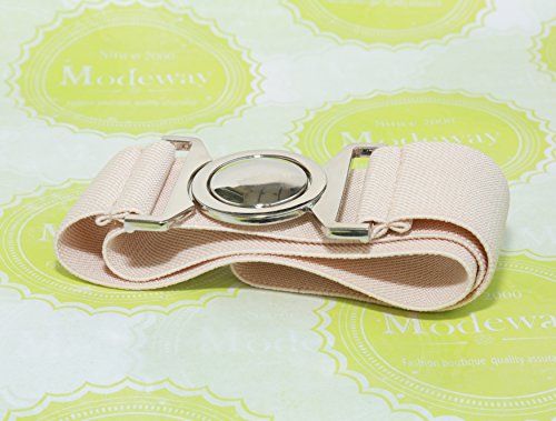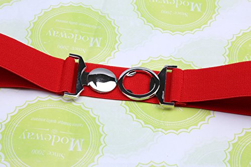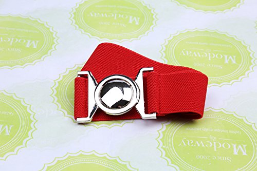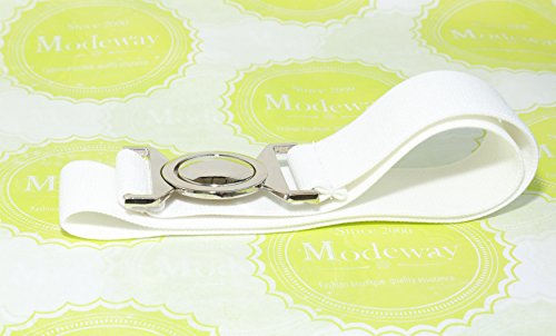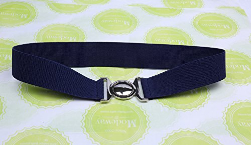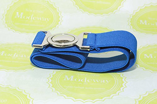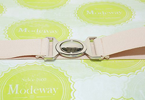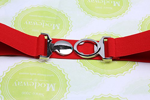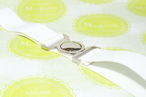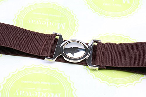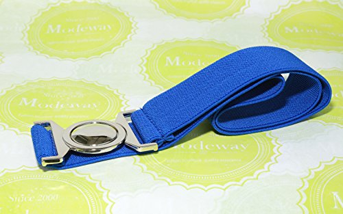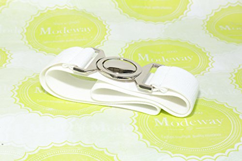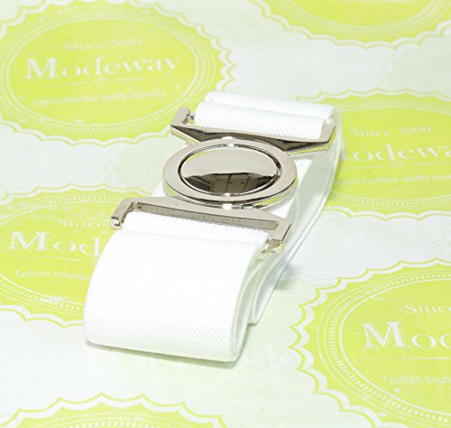 | Modeway Womens Fashion 1.5" Wide Elastic Stretch Silver Buckle Cinch Waist Belts |