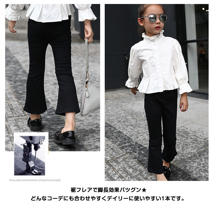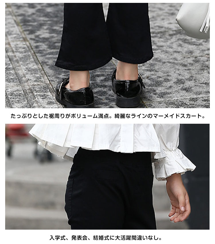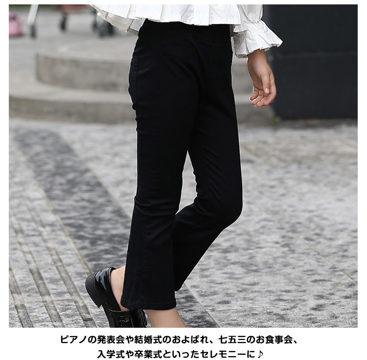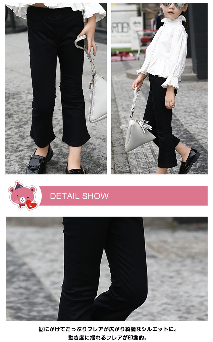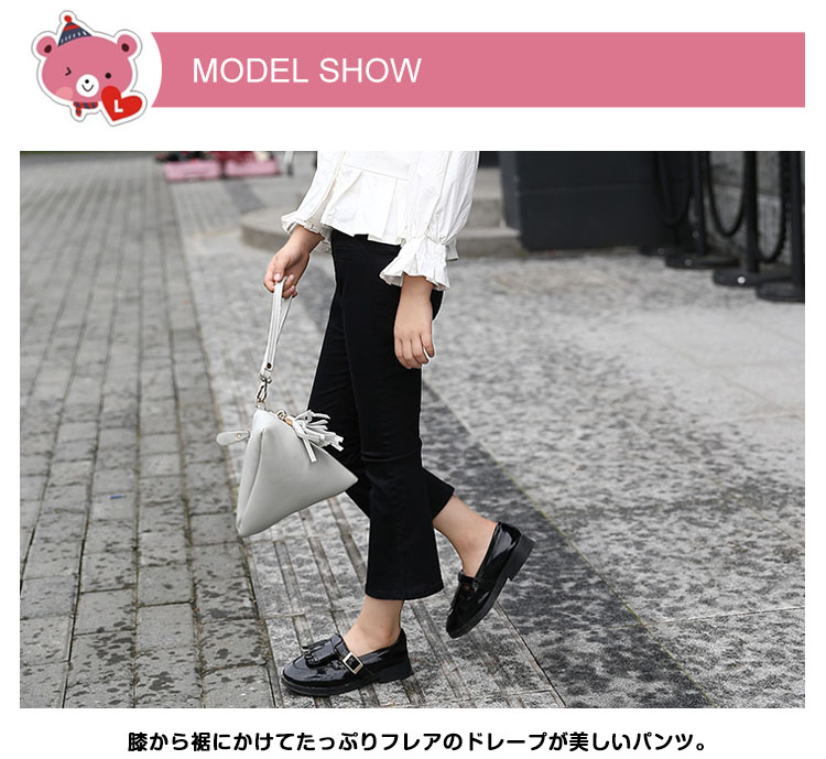 | 膝から裾にかけてたっぷりフレアのドレープが美しいパンツ。 裾フレアで脚長効果バツグン★どんなコーデにも合わせやすくデイリーに使いやすい1本です。ピアノの発表会や結婚式のおよばれ、七五三のお食事会、入学式や卒業式といったセレモニーに♪ | |