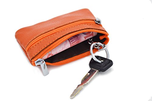 Made from durable and lightweight cowhide leather, soft and comfortable. The lining was made of the smooth and durable fabric. Probably has wonderful new leather aroma. If you are not used to it, you could just open the package and put it in a ventilate place for a few hours, then the smell will fade away. A stylish approach to compact style, this mini coin purse is made of cow leather soft and durable, fully lined interior,exterior features a front zip pocket for coins, top has another zip pocket for change,bills or other small items, and a key fob is inside at side to hold your keys, you can hide it inside when you have no keys to clip. With roomy inside pouch you can easily hold credit cards and a few bills and dollars, and not bulky at all. We believe that it is your right decision to choose Freezx.
