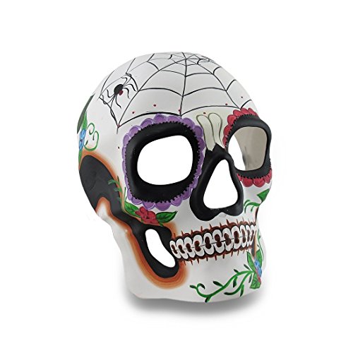 -. Brand : Zeckos -. ClothingSize : Adult one size fits most -. Color : White -. Department : mens -. EAN : 0852676913197 -. Feature : 10 1/2 in. High, 7 1/4 in. Wide, 5 in. Deep / Made From Resin / Colorful Hand-Painted Finish / Attached Ribbon Strap Ensures a Great Fit / Fun as a Wall or Table Decoration -. Label : Zeckos -. Manufacturer : Zeckos -. Model : M3174K -. MPN : M3174K -. PackageQuantity : 1 -. PartNumber : M3174K -. ProductGroup : Apparel -. ProductTypeName : ADULT_COSTUME -. Publisher : Zeckos -. Size : Adult one size fits most -. Studio : Zeckos -. Title : Colorful Spider Web And Flowers DOD Sugar Skull Style Halloween Mask -. UPC : 852676913197