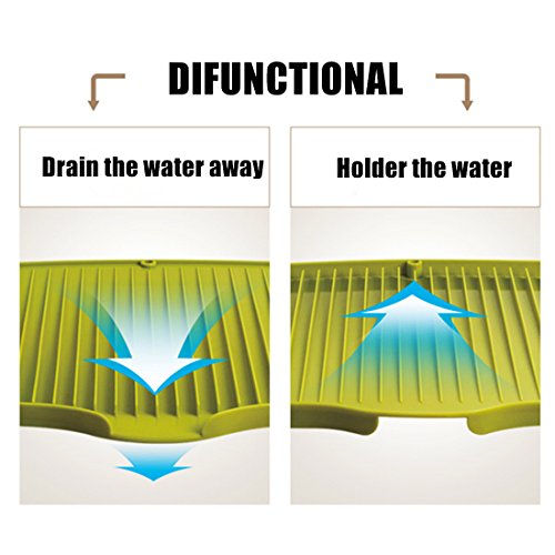 -. Feature : Diploid Usage Design.Can be used alone or under a dish drainer.One side is designed to drain the water away,Sloped and drainage outlet design to make the dishes drying fast. Another side is designed to holder the water make it can be used in a cabinet. / 2.Easy for storing. Can be easily hung with the hole.Lightweight and slim design is ideal for storage under the sink or in a cabinet. Saving space and keeping clean. / Adopting food grade PP material, no peculiar smell, Safety and health. / 4.Easy to Clean. Just put it under the running water or use brush to clean it. / 5.100% Customer Satisfaction: 1.90 Days Refund and Liftime Warrantty if you don't like our products!2.If you have any questions, please contact us immediately before leave feedback/review