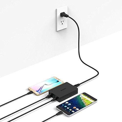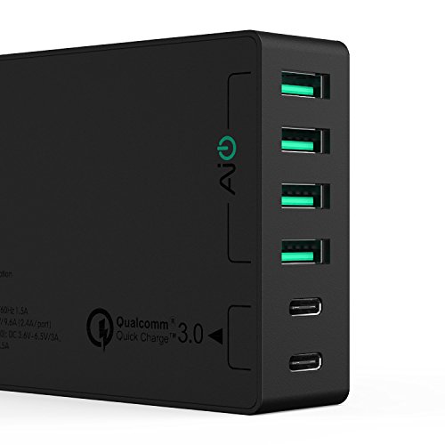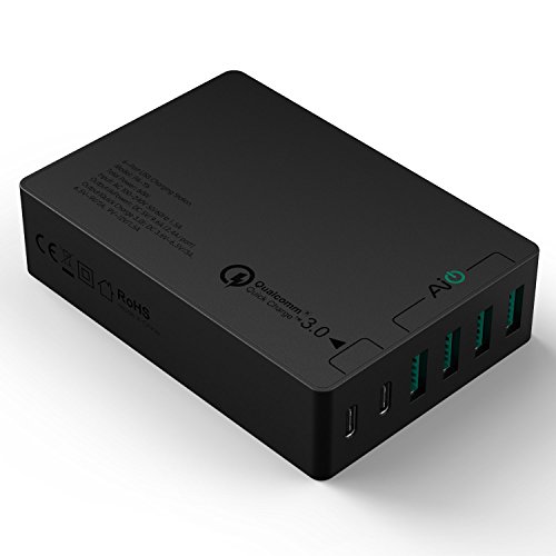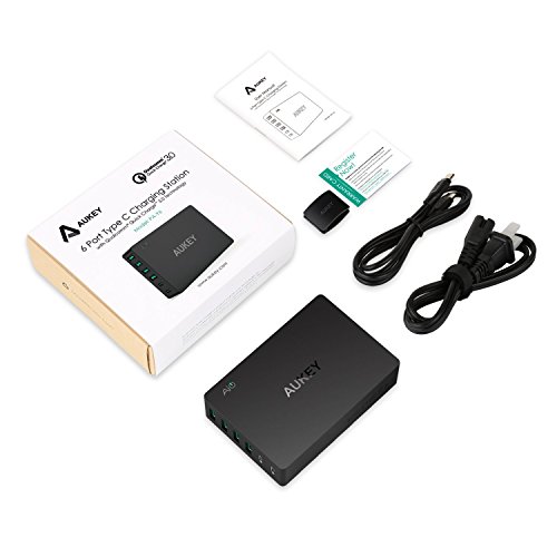 -. Feature : Charge compatible devices up to 4 times faster with Qualcomm Quick Charge 3.0 Technology / 2 Quick Charge 3.0 USB-C Ports + 4 AiPower Adaptive Charging USB-A ports with dedicated 2.4A output / Compatible with all USB powered devices including Quick Charge 2.0 & Apple phones & tablets / Built-in safeguards protect your devices against excessive current, overheating, and overcharging / Package Contents: AUKEY Amp 6 Port Charging Station, 3.3ft C to C cable, User Manual, 24 Month Warranty Card