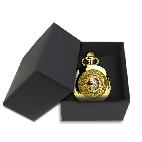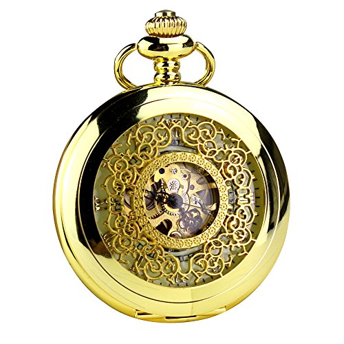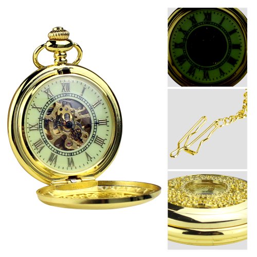 -. Title : KTC Orkina Vintage Gold Color Glow in the Dark Dial Hand-Wind Mechanical Skeleton Dial Chain Pocket Watch ORKP003