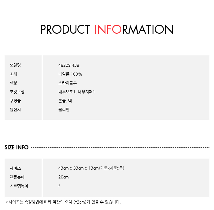 사이즈사이즈 : 43cm x 33cm x 13cm(가로x세로x폭)
