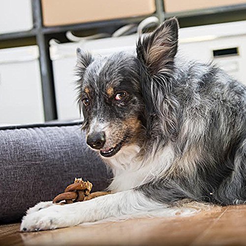 -. Feature : Size: 3 pcs/set, 7.5 inch bone-shaped rawhide chews for medium to large dogs.About 110g/pc / Material: Made from natural rawhide beef tendon and deep sea fish oil, no artificial colors or flavors / Healthy: Helps clean your pet's teeth, promotes healthy gums, and improves dog's breath / Beneficial: With a natural meaty flavor, will give your dog hours of chewing pleasure.It prevents dogs from chewing valuable items, provide your dog stimulation and help relieve anxiety. / Note: Dog rawhide doesn't digest easily, is great for dog training, can't eat too much as snack, especially puppies.