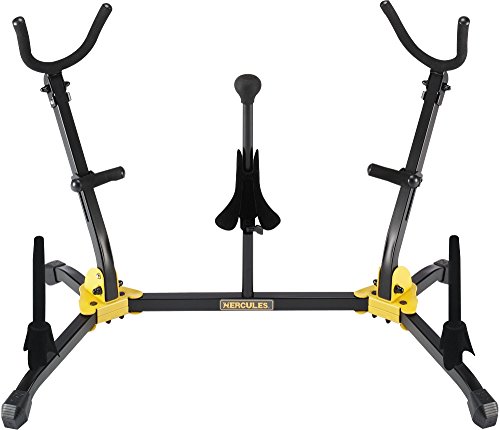 -. Feature : Brand: HERCULES / Adjustable backrests fit both Alto and Tenor sax / 1 SFF-coated Soprano Saxophone peg detaches for storage / 2 SFF-coated Flute/Clarinet pegs detach for storage / Swivel Legs fit around other equipment