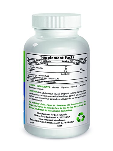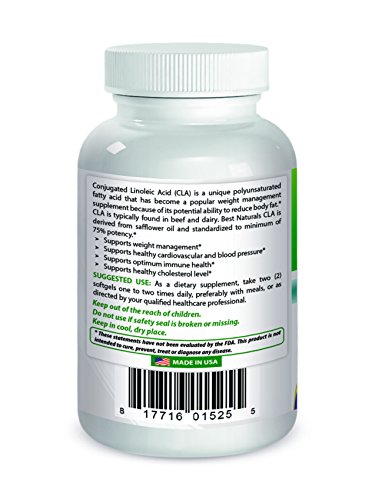 -. Binding : Health and Beauty -. Brand : Best Naturals -. EAN : 0817716015255 -. Feature : Increased metabolic rate: This would obviously be a positive benefit for any type of athlete that is trying to lose weight and improve body composition. / Promotes growth of healthy muscles by allowing nutrients into healthy muscle cells / Healthy Weight Management by Reducimg Body Fat / CLA supplements are made from safflower oil, a plant that has a high linoleic acid content (a healthy polyunsaturated fatty acid). The supplement comes in a gel pill form that is easily digested. / All Best Naturals products are manufactured in accordance with Good Manufacturing Practices (GMP), among the highest standards in the world -- Proudly Made in USA -- Purity & Potency Guaranteed -. IsAdultProduct : 0 -. Label : Best Naturals -. Manufacturer : Best Naturals -. MPN : 817716015255 -. PackageQuantity : 1 -. PartNumber : 817716015255 -. ProductGroup : Health and Beauty -. ProductTypeName : HEALTH_PERSONAL_CARE -. Publisher : Best Naturals -. Studio : Best Naturals -. Title : Best Naturals CLA 1300 mg 90 Softgels -. UPC : 817716015255
