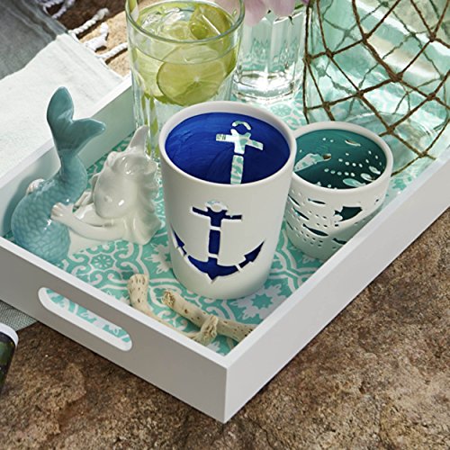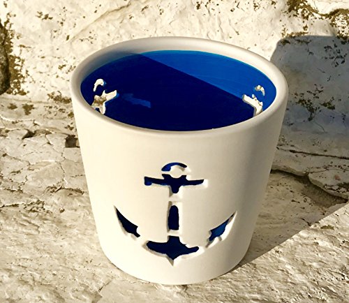 Studio : Whole House Worlds Publisher : Whole House Worlds Binding : Kitchen Product Description ANCHORS AWAY, no matter if it's the lure of the lake or the call of the sea, inspire amazing evenings full of magical ambiance with Beach Chic Ancor Wind Lights. Sold as a set of 2, simply add your own votive wax or LED candles inside to create a cool coastal vibe. CRAFTED BY HAND of white porcelain bisque, each piece in this set depicts a whimsical anchor that acts as tiny window revealing the brilliant blue insides of these pieces. WELL SIZED for table tops, these pieces measures as follows: 1 - larger: 3 ½ diameter x 4 ¼ high, and 2 - smaller 3 diameter x 2 3/4 high inches. SET SAIL WITH SEASIDE VIBES Designed to pair with a variety of themes, these versatile pieces are especially well suited for creating dynamic table top centerpieces. AN IDEAL GIFT, it's perfect to celebrate holidays, birthdays, weddings and many more. So gorgeous, you'll want to keep it at home for yourself. Enjoy! By Whole House Worlds Welcome to the product line of Whole House Worlds. The New York based company offers high quality, stylish products for every room in the house, and beyond. From the kitchen, to the living room, to the bedroom, dining room, home office, closet and garden: Our criteria are comfort, quality, style and value. 0