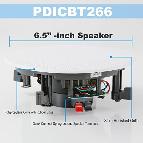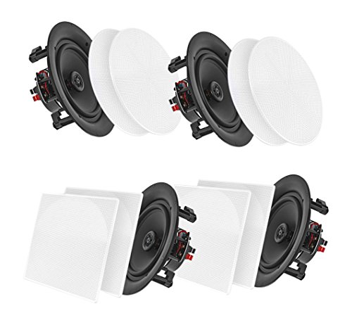 Pyle 6.5” 4 Bluetooth Flush Mount In-wall In-ceiling 2-Way Speaker System Quick Connections Changeable Round/Square Grill Polypropylene Cone & Tweeter Stereo Sound 4 Ch Amplifier 200 Watt (PDICBT266)