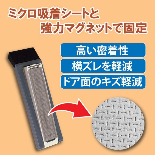取り付け部分は、ミクロ吸着シートと強力マグネットをダブルで利用した強力設置方法を取り入れてます。繰り返しての使用が可能で、はがした時に跡が付きにくくなってます。