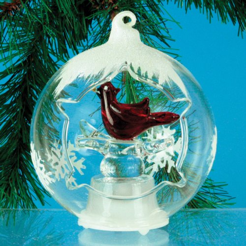 - LED Clear Glass Ornament Open Front with Cardinal on Branch Figurine