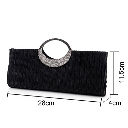 Product Description A night out on the town is the perfect change to show your elegant taste wearing the Nodykka evening clutch. The beautiful pleating with dual magnetic closure design and ring metal sparkling rhinestone detail coordinates perfectly with your dress for dinner, brunch, engagement, wedding, or other formal occasions. This purse features one main internal compartment with a credit slot. It's big enough to accommodate your party essentials - phone, keys, lipstick, comb,glasses, coins, id, some cashes and other personal items. Detail Color:White/Wine Red/Red/Blue/Black/Apricot/Rose/Pink/Gold/Coffee Detachable metal chain shoulder strap Occasion: Wedding/Cocktail Party/Evening/Prom Please note, the hardware color and interior lining may differ from the color shown in the photo.