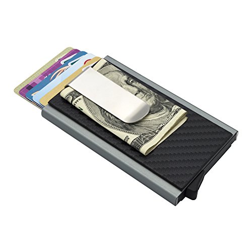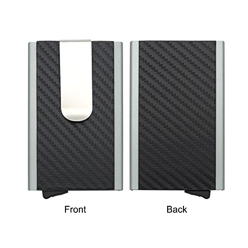 -. Feature : RFID BLOCKING WIRELESS THEFT - RFID blocking protection design, keep your P.R.Ivate information and credit card away from thieves' scanning devices, insure your P.R.Ivate property safety. MOSIYEEF slim wallet farthest protects your P.R.Ivacy. / HIGH TEXTURE AND APPEARANCE - Made of premium aviation aluminum materials from top manufacturer and covered with premium imitation carbon fiber on both sides.High strength metal body protect your cards from physical damage and ensures long service life, while high grade imitation carbon fiber enchance the texture and appearance / SIMPLE & EASY TO USE - Push the button on the bottom, the card will pop out automatically.You can easily get the cards in the card holder, simple and elegant.CAPACITY for up to 8 CARDS.With Strong stainless steel Money clip that can easily carry 3~6 folded bills / PERFECT CHOICE - Practical, makes Big Impression when taken out in front of friends and family. Luxurious appearance and premium quality makes this wallet great as a gift or even better for self-use. We honestly believe you will love this wallet / 100% SATISFACTION & RISK-FREE MONEY BACK GUARANTEE - MOSIYEEF offer 60 Days Money Back & Lifetime Guarantee and Friendly, Easy-to-reach Support. Please Choose MOSIYEEF.