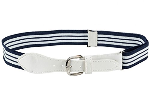 -. Title : Kids Elastic Adjustable Belt with Leather Closure - Navy Striped With White Leather