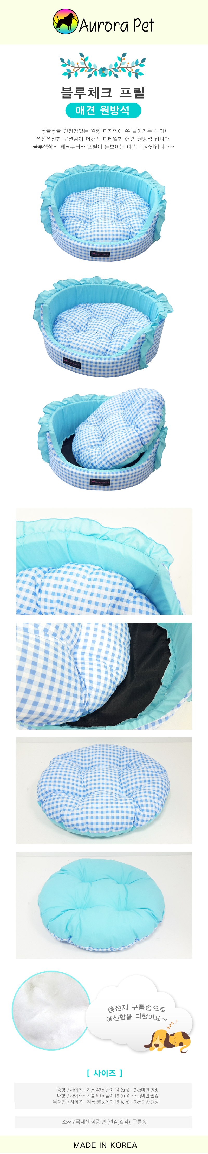 Blue check cushion puppet cats round pet cushion ruffles