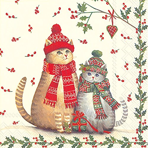 Ideal Home Range 20 Count Cocktail Napkins, Christmas Cats