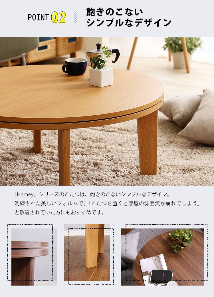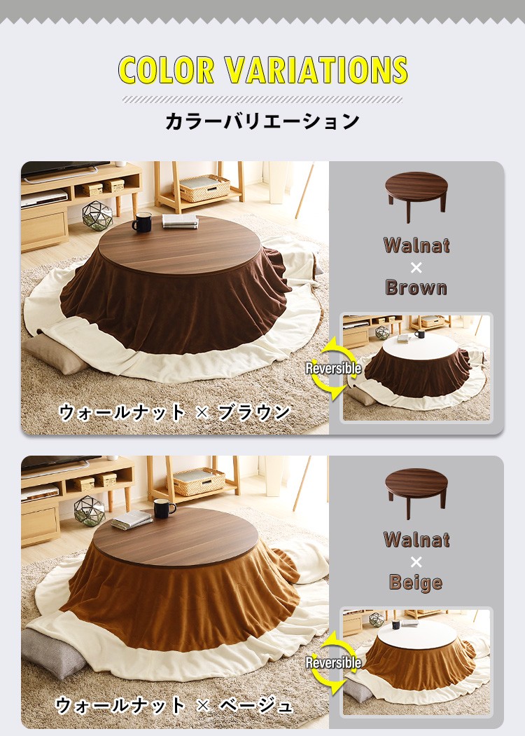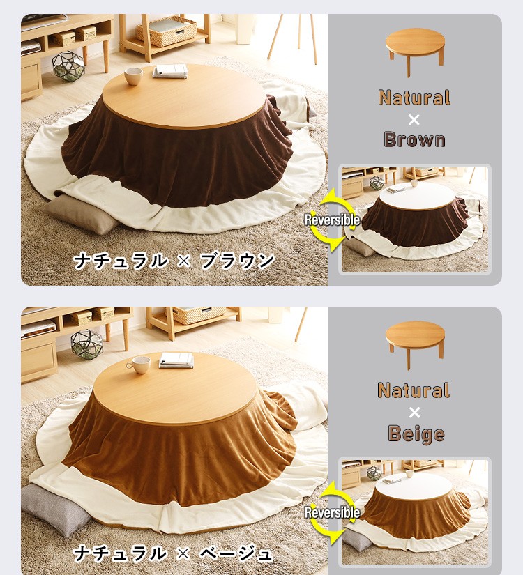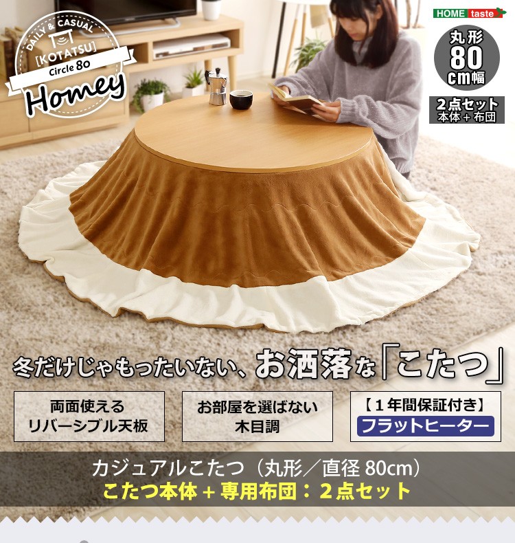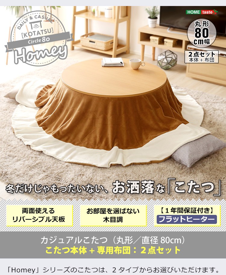 木目調 カジュアル リバーシブル こたつ フラットヒーター付 80cm幅 丸形 こたつ布団セット SET【Homey-ホーミー -】シリーズ [CIRCLE 80]
