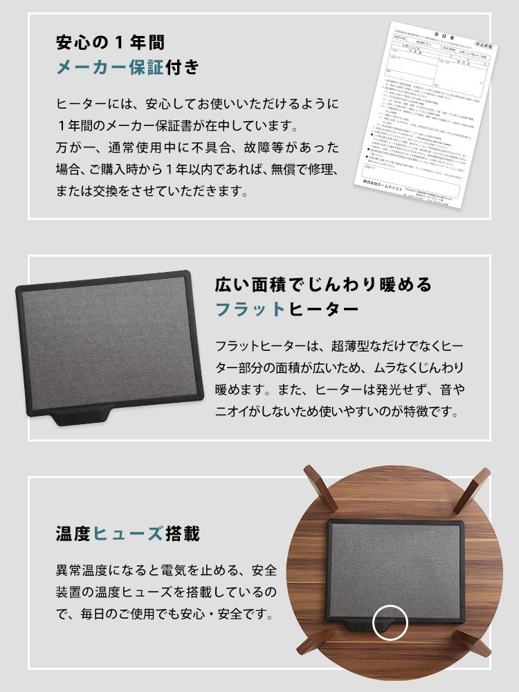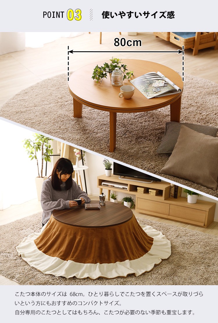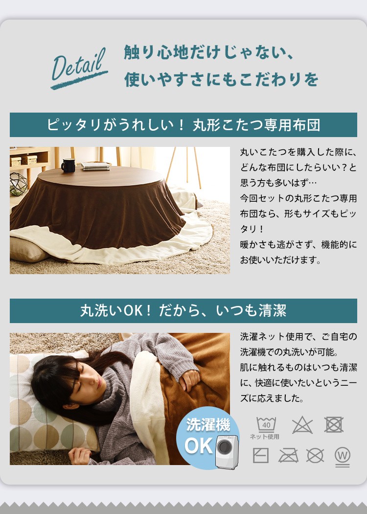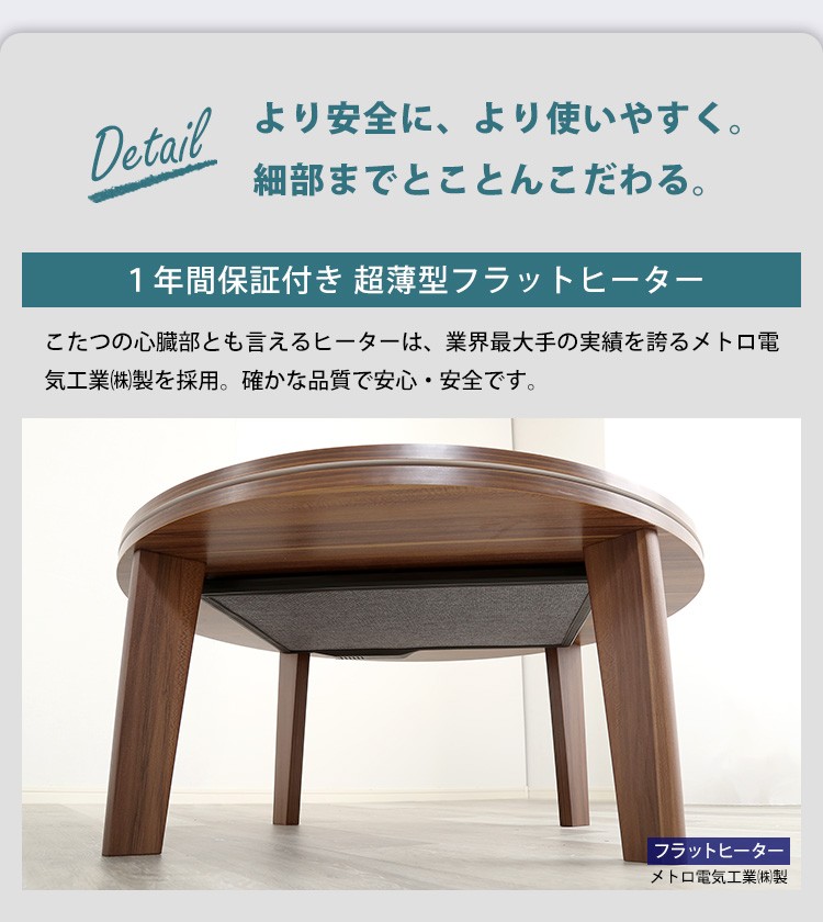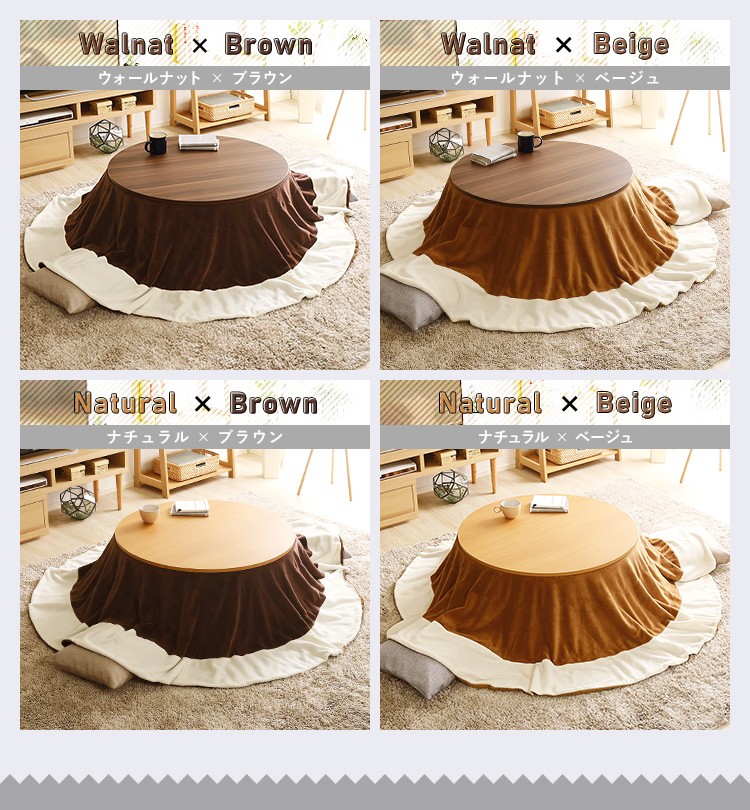 木目調 カジュアル リバーシブル こたつ フラットヒーター付 80cm幅 丸形 こたつ布団セット SET【Homey-ホーミー -】シリーズ [CIRCLE 80]