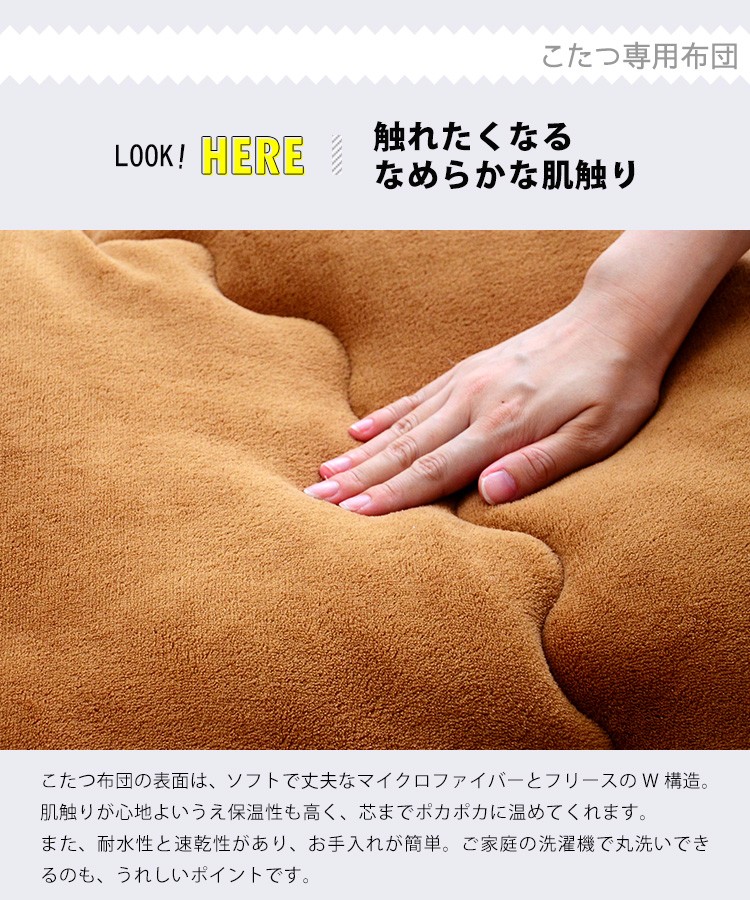 こたつ布団:側生地:表地、裏地:ポリエステル100% 詰め綿ナシ