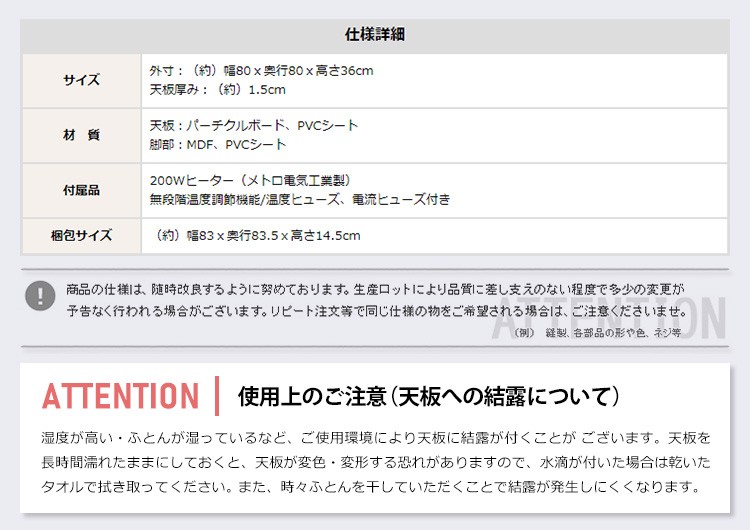 【梱包サイズ】こたつ本体:83×83.5×14.5cm