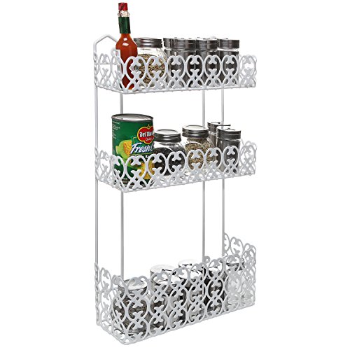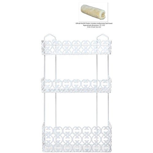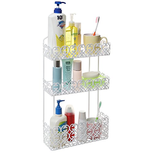 - Title : MyGift Decorative White Wall Mounted 3 Tier Shelf Baskets / Kitchen Spice Rack / Bathroom Product Holder