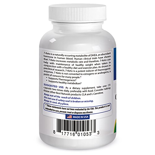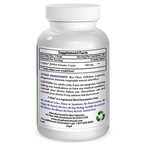-. Binding : Health and Beauty -. Brand : Best Naturals -. Feature : Helps activate 3 thermogenic enzymes* / Supports enhanced metabolism without stimulants* / Helps metabolize fat stores in the body, resulting in weight loss* / All Best Naturals products are manufactured in accordance with Good Manufacturing Practices (GMP), among the highest standards in the world -- Proudly Made in USA -- Purity & Potency Guaranteed -. Label : Best Naturals -. Manufacturer : Best Naturals -. ProductGroup : Health and Beauty -. ProductTypeName : HEALTH_PERSONAL_CARE -. Publisher : Best Naturals -. Studio : Best Naturals -. Title : 7-Keto 100 mg by Best Naturals -- High Quality 7-Keto DHEA Supplement - #1 Belly Blasting Weight Loss Supplement -- Manufactured in a USA Based GMP Certified Facility and Third Party Tested for Purity. Guaranteed!!