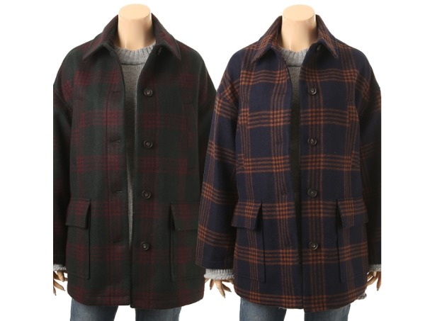 여성 하프기장 체크 자켓형 코트 입니다.