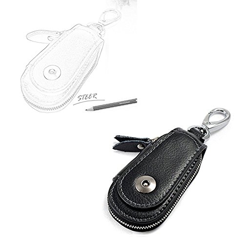 -. Title : Kumeed Black Genuine Leather Car Key Case Cover Holder Pouch Remote Key Chains Key Bag