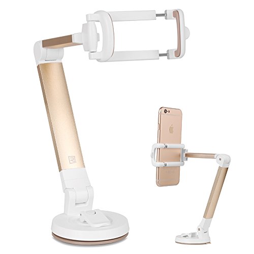 Sbode Phone Stand Holder Adjustable Desktop Table Car Mount Sturdy Cradle with Suction Cup for iPhone 7/7sPlus,6/6s,/5s, Smart Phone(Gold)