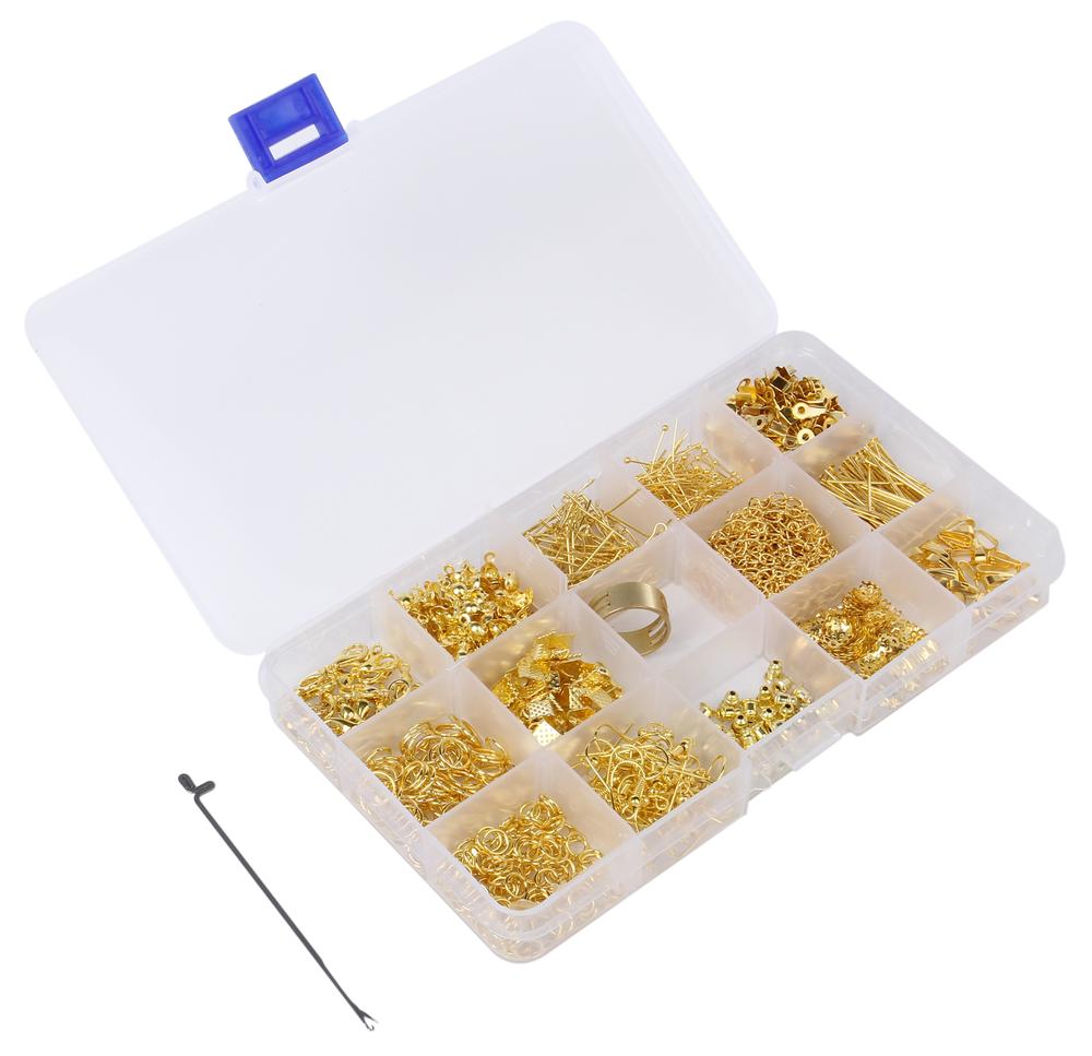 ・セット内容:クリップ×200、丸カン(6mm)×115、(8mm)×85、花パーツ×100、ベストバックル×40、Tピン×80、9ピン×90、球カン×100、バックバックル×80、ピアス×40(20組)、ピアスキャッチ×36、カニカン×30、チェーン×5、バチカン×30、指カン×1、かぎ針×1
