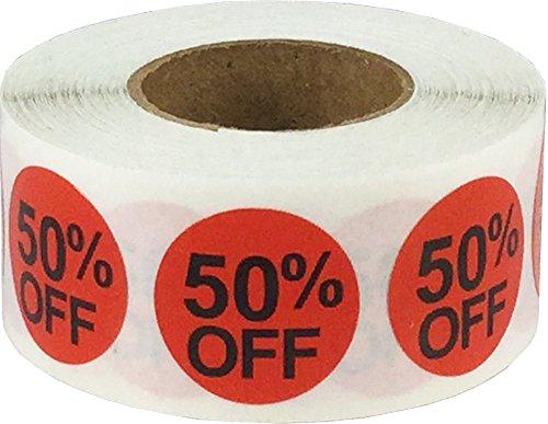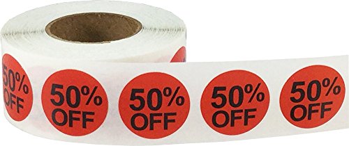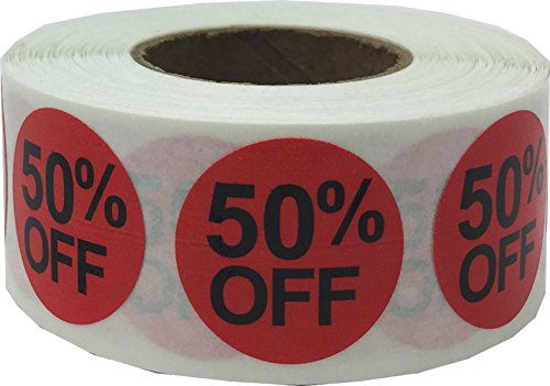 InStockLabels 50% Percent Off Stickers 3/4 Inch 500 Adhesive Stickers, Red With Black Lettering