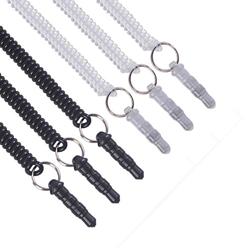 Stylus Tether, Wisdompro 10 Pack of Detachable Elastic Coil Tether Strings / Lanyards with 3.5mm earphone jack for Stylus Pens - Black / Clear