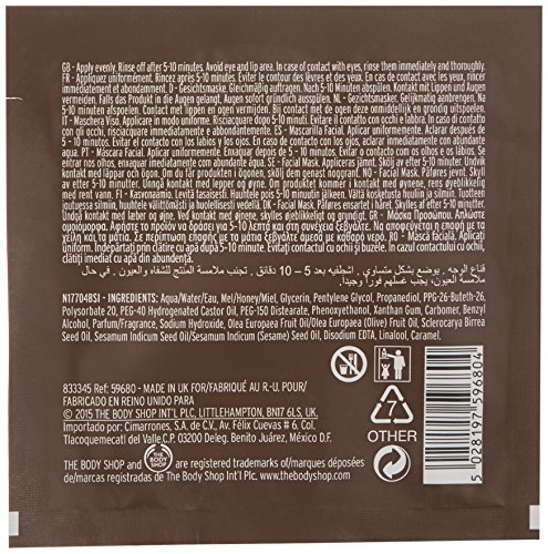 The Body Shop Ethiopian Honey Deep Nourishing Mask, Single Use Expert Facial Mask, Paraben Free, 0.2 Oz.