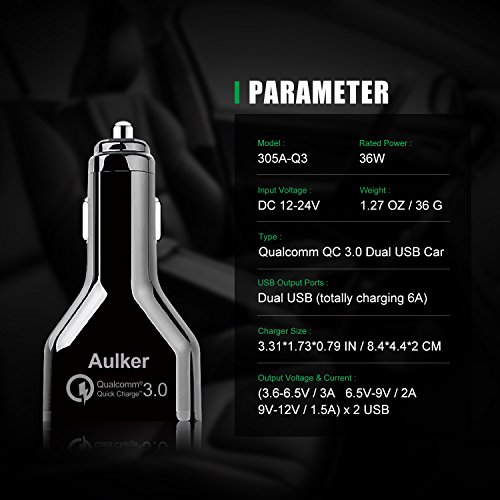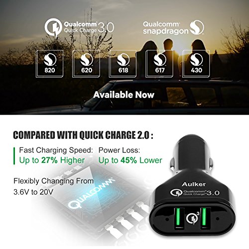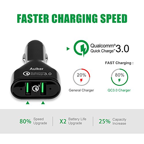 2 PORT DUAL USB, SUPER PORTABLE AND CONVENIENT, AND, LOOKING GREAT : black slim business design, perfect for your car. With 2 USB charging port and Qualcomm Quick Charge 3.0 technology, your compatible devices will be charge up to 80% faster than other traditional chargers.