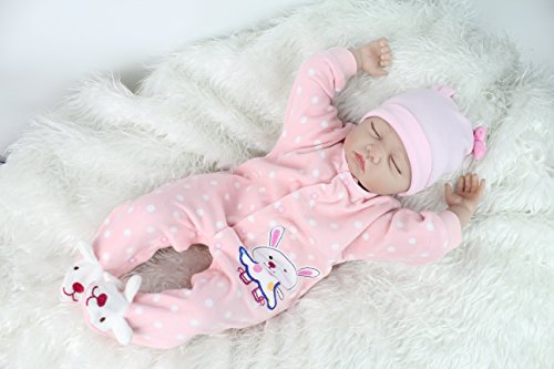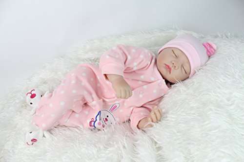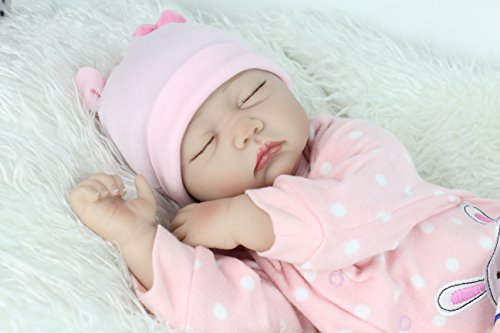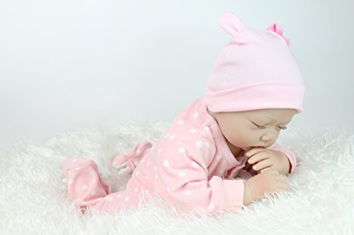 Unique 22-inch handmade baby doll with a hypnotizing look and innocent sleeping expression. Beautifully painted face, dimple on her tiny chin and innocent look will appease anyone and make it baby's best friend and everyday companion. This cute little princess will encourage nurturing play and inspire memories your young girls will cherish forever. Designed and manufactured with precision and hand painted,the resemblance of the doll with a real baby is amazing. We paid due attention to each tiny detail- the resemblance with a real baby will impress you and will make it your baby's best buddy. Composed from easy-clean vinyl of superb quality. Non-toxic and eco-friendly. Realistically poseable,decked out in a pink outfit with nice hat and socks to match. Cute little princess for your own baby princess and she will be loved by everyone at home!!