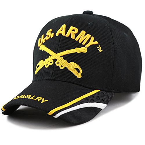 The Hat Depot Official Licensed US Army 3D Military Gold Logo Baseball Cap With Mesh detail