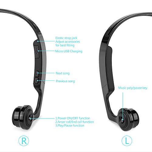 -. Feature : ※ What is Bone conduction technology :by creating mini vibrations, it sends sound through the cheekbones directly to the inner ears, avoiding damage to the ears using conventional earphones. / ※ Super HD Sound than normal headphones: With this new smart bone conduction headphones you can enjoy heavy bass and crystal clear treble whilst listening to your favorite music. By putting on ear plugs ensures you better sound quality. / ※ Wider connection and Long battery life: Upgraded bluetooth V4.2 with wide connection up to 30 ft away, and Fast, secure and stable connectivity. It is energy saving allows constant music for up to 8 hours and 240 hours stand-by with a quick charge of less than 1 hour. / ※ Best equipment for sports: Headphone is sweatproof, moisture and drip resistant making it ideal for outdoor sports activities, running, cycling, workouts and extreme sports. Can connect 2 devices simultaneously. / ※ Comfortable wearing experience: A tension band is attached to adjust headphones to fit for different head circumference ensures your whole experience comfortable and tension free.