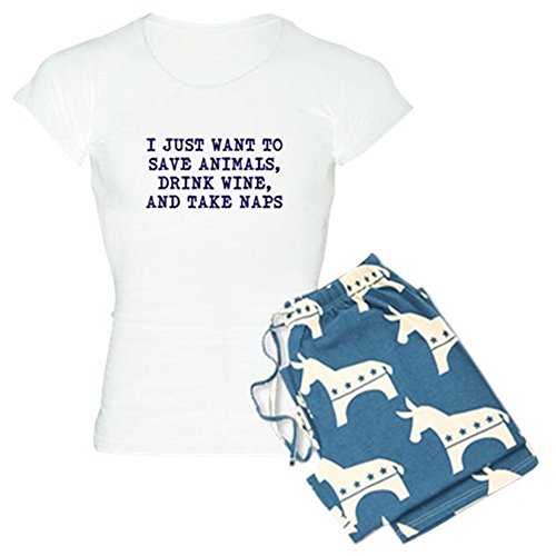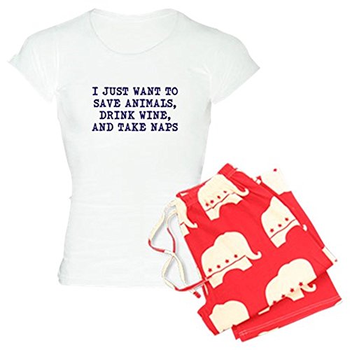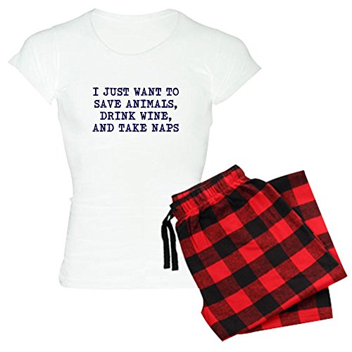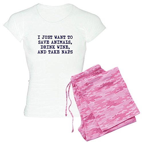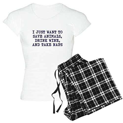 | CafePress - Save Animals, Drink Wine, Take Naps Pajamas - Women's Light Pajamas |