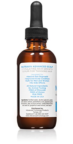 DEVELOPED IN TOP USA HAIR LOSS CENTER: The Advanced Trichology line was developed in our own top rated hair loss treatment centers. The Nutraviv Topical Scalp Serum has been scientifically tested in our clinics for those who wanted a non-minoxidil alternative that real works. The Nutraviv hair growth serum uses a proprietary formula that has already shown amazing results for women and men.