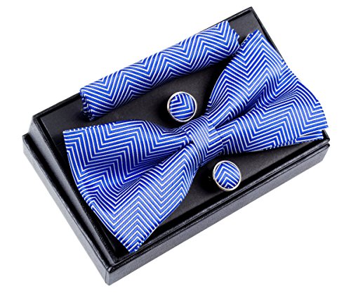 -. Feature : Pre-Tied Bow Tie with adjustable strap, 100% Polyester Microfiber, Width: 5 inches, For Necksize up to 19 inches / Pocket Square, 11.5" x 11.5" / Cufflinks, Diameter: 0.6" / Free gift box, contains: 1 x Bow Tie, 1 x Pocket Square and 1 pair of Cufflinks / Care Guide: Dry Clean Only