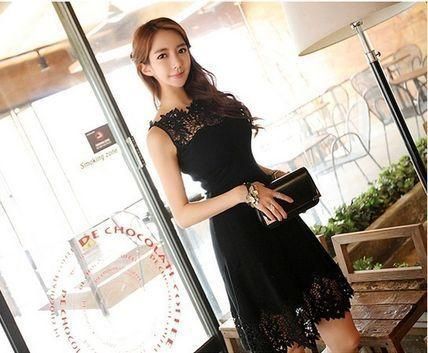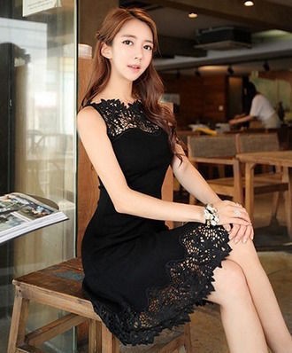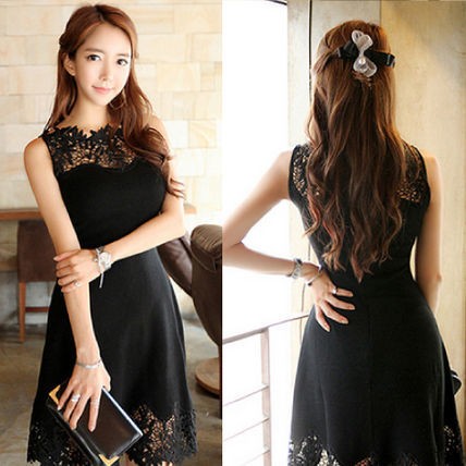 パーティードレス ひざ丈 ワンピース 花柄レース ブラック 透け感 シンプル 大人 上品 セクシー 可愛い お呼ばれ drgz2621