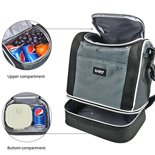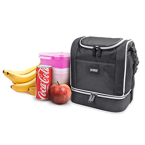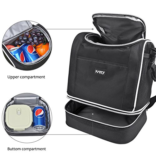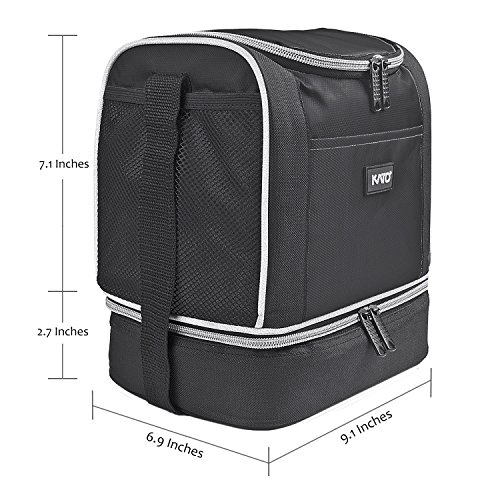 -. Feature : DOUBLE DECKER DESIGN - Top and bottom - two compartments, front and two side mesh pockets, elephant design facilitate you to organize all your needs. / THERMAL INSULATED - Made of 600D durable polyester. Thick padded with PE foam, insulated with the PU material, remains your foods at constant temperature for hours. / PORTABLE : Adjustable shoulder strap, lightweight and compact, perfect for carrying lunch to school, office and outdoors. / ROOMY SPACE: 9" x 6.9" x 7.1" (L x W x H) of top compartment; 9" x 6.9" x 2.7" (L x W x H) of bottom compartment. Can easily store all you needs for your lunch.can easily store all you needs for your lunch. / CUSTOMER CARE PROMISE: Kato always provide excellent product and service to our customer. For any reason you aren't satisfied with the insulated lunch bag. CONTACT US directly and we will take care of you. We love to help!