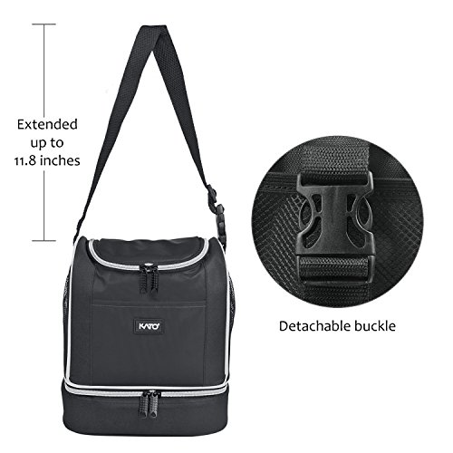 -. Title : Kato Insulated Lunch Bag, Freezable Portable Bento Cooler Totes for Men, Dual Compartment with Shoulder Strap