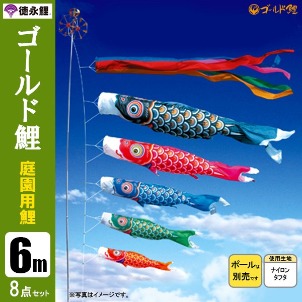 | ゴールド鯉 庭園用大型鯉のぼり 杭打込式ポール付セット | 1.5m鯉3匹 | 2m鯉3匹 | 3m鯉3匹 3m鯉4匹 3m鯉5匹 | 4m鯉3匹 4m鯉4匹 4m鯉5匹 |