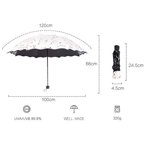-. Binding : Misc. -. Brand : Ghaziman -. Color : Four-color -. EAN : 6264606409764 -. Feature : Hardened steel ribs with corrosion resistant fiberglass tips for ultimate strength and flexibility. / Gentle Tension Spring for Easy Closing of the Telescoping Handle to Compact Position. 100% Polyester Canopy, a Non-absorbent Synthetic Polymer That's Water Repellent, Abrasion Resistant, Mold and Mildew Resistant. And wind resistant , waterproof & UV protectiong,SPF:UPF>45,AV<5% / PORTABLE AND LIGHTWEIGHT - This excellent umbrella is the perfect combo of portability, protection and durability. The 190T specially coated water repellent fabric and slip resistant rubberized handle make it outperform other compact umbrellas. Foldable to 9.25 inches / Convenient Automatic Open & Close Canopy: Auto Open. Auto Open Is Handy for Quick Entry out to a Car / LIMITED TIME PRICING! BUY NOW - 100% satisfaction guarantee and backed by our 1 year warranty replacement against manufacturer's defects. -. IsAutographed : 0 -. IsMemorabilia : 0 -. Label : Ghaziman -. Manufacturer : Ghaziman -. MPN : 210T -. PackageQuantity : 1 -. PartNumber : 210T -. ProductGroup : Sports -. ProductTypeName : SPORTING_GOODS -. Publisher : Ghaziman -. Size : 23.5cm -. Studio : Ghaziman -. Title : Ghaziman Lightweight Korean version of the Four-color flowers creative folding umbrella UV protection sun umbrella,Auto Open Close Button for One Handed Operation - Lifetime Guarantee