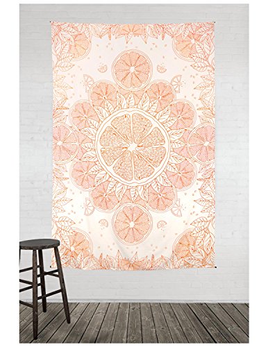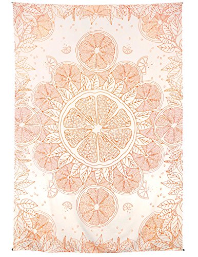 Zest For Life Citrus Fruit Mandala Tapestry Tablecloth Beach Sheet Wall Art 80x52 Inches Orange - FREE Sticker Included