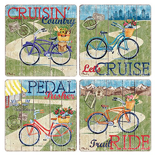 CoasterStone Country Cruisers Absorbent Coasters (Set of 4), 4-1/4", Multicolor