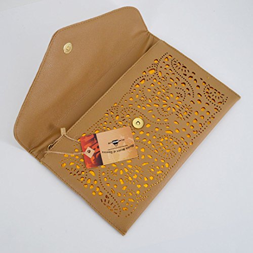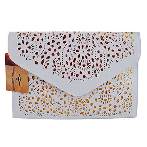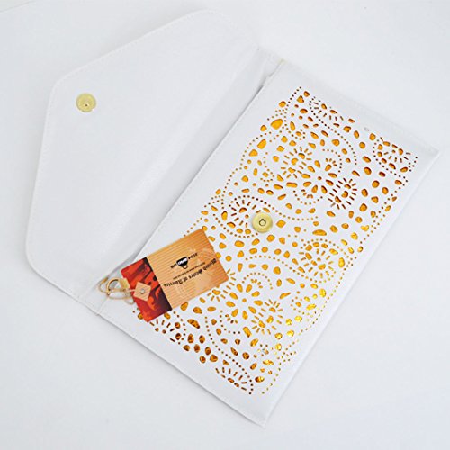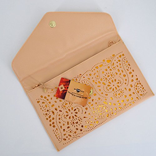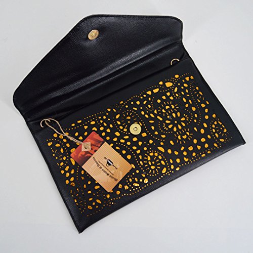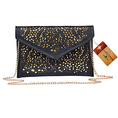 The women's vintage evening clutch is made of improved PU leather, durable and stretchy, providing you the fashion and long-lasting use. The exquisite hollow out floral pattern, unique and out of ordinary, the prevalent fashion element this year. Large capacity yet lightweight, more spacious than others, suitable for tablet, cell phone, small wallet, lipstick, cash, cards, etc. Accompanied with the gold-tone metal shoulder strap, convenient and detachable, can be used as a evening clutch, a casual tote handbag, a retro shoulder bag or crossbody bag. Works perfectly for dating, shopping, traveling, parties, work, etc.