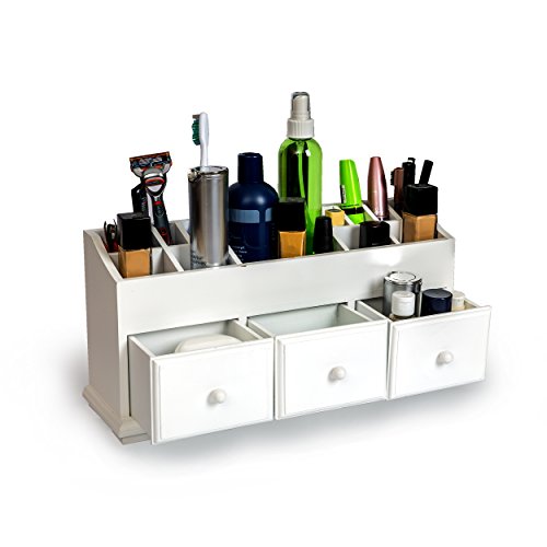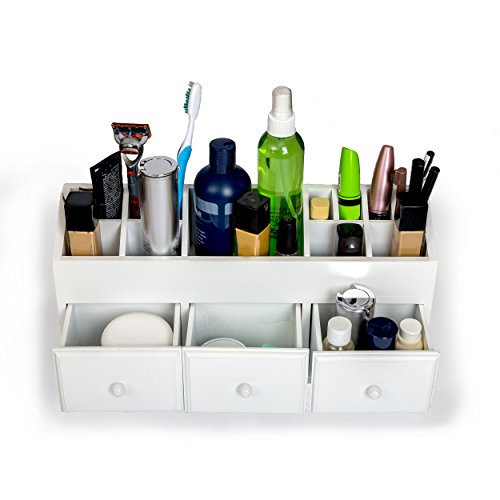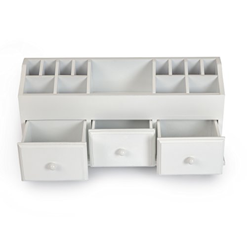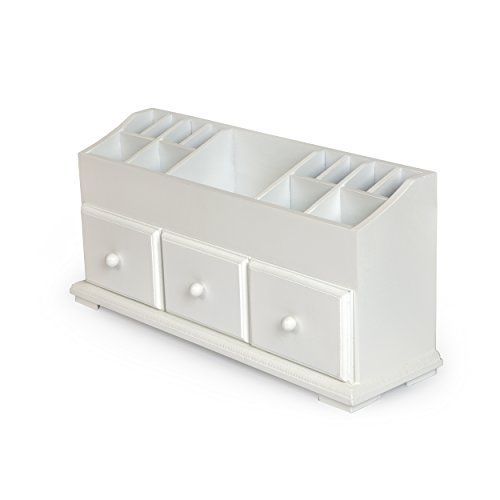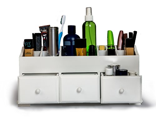 VANITY DRAWER BEAUTY ORGANIZER 3 Drawers - White Wooden Cosmetic Storage Box for Neat & Organize Storing of Makeup Tools, Small Accessories at Home & Office for Vanities & Bathroom Counter-top