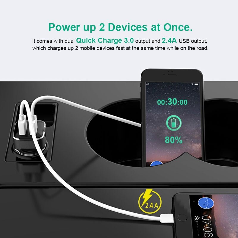 ZOLA Dash Q 30W Quick Charging 3.0 Car Charger - Black/Black and Grey |